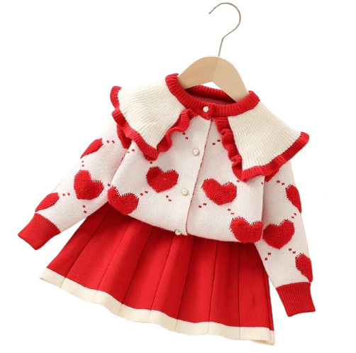 Pretty in Pink Heart Sweater Skirt Set