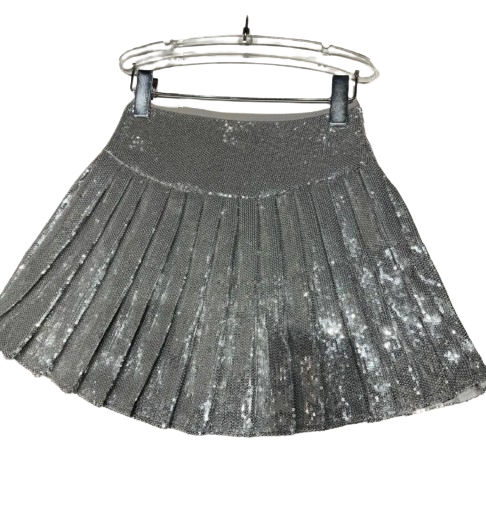 SparkleBreeze Kids' Silver Sequin Pleated Skirt